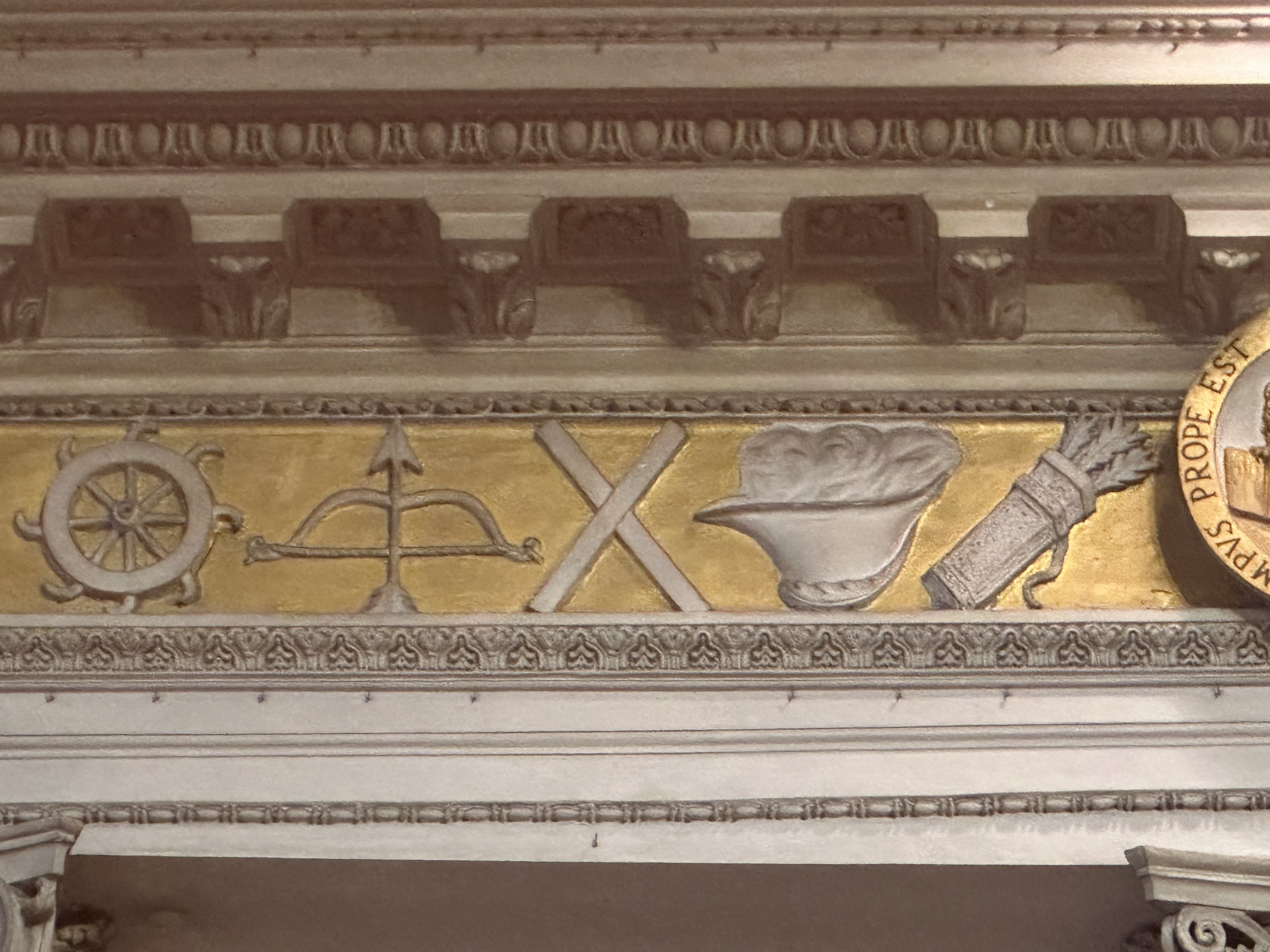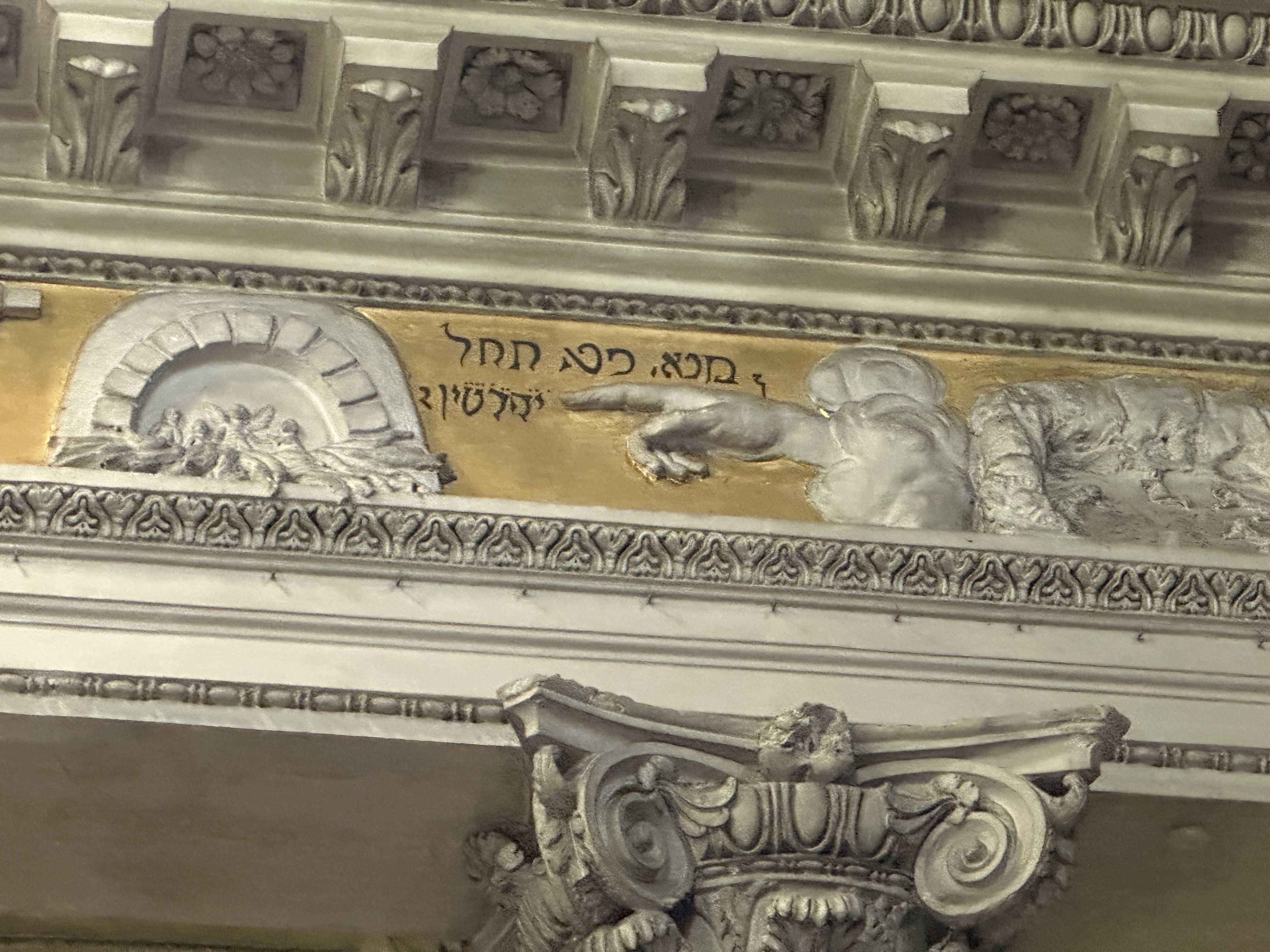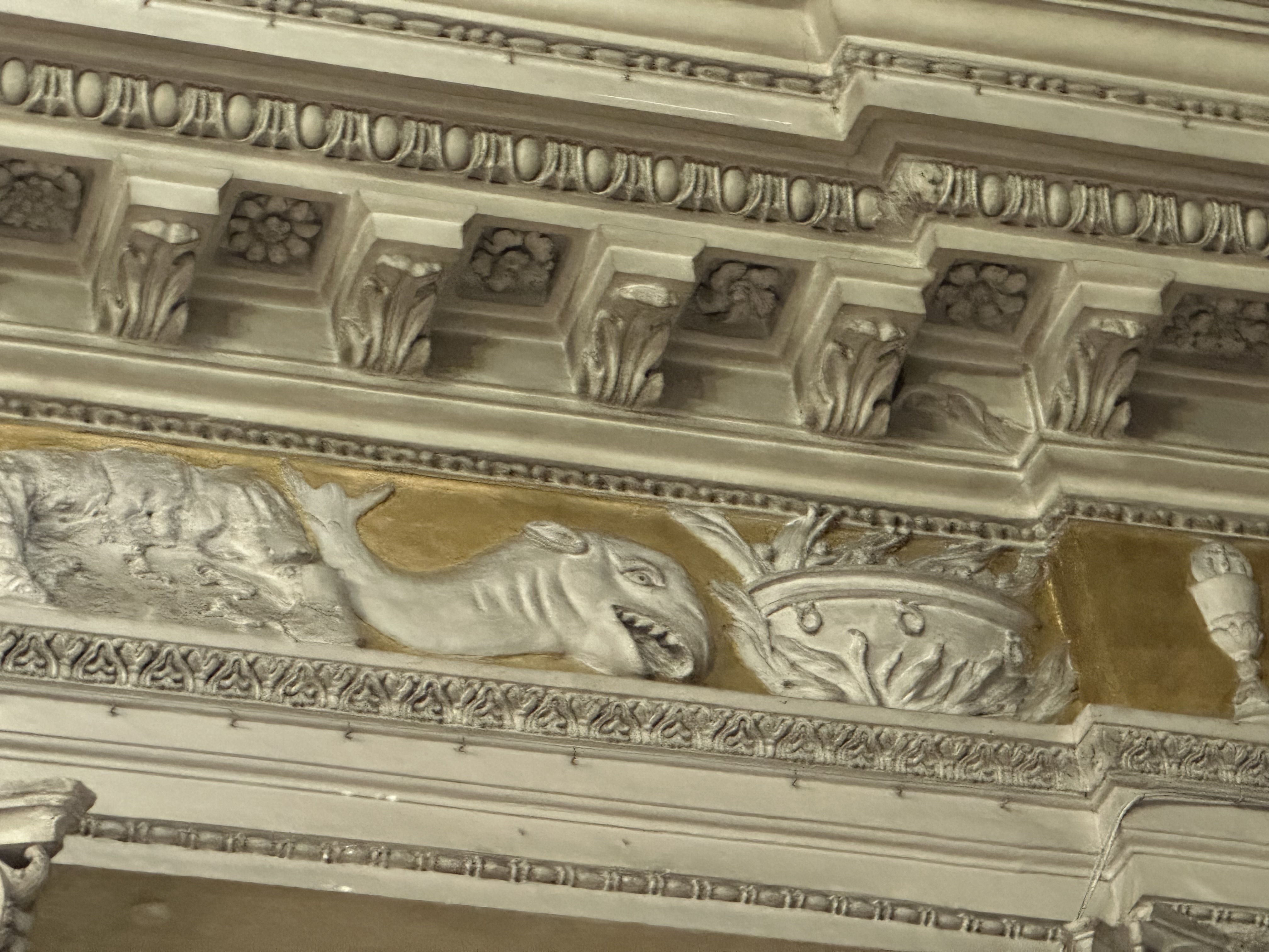 Then, in one of the things we love about this kind of event, the priest lovingly spoke about what makes this church special to him. He explained that, to keep fidgety children entertained during mass, parents can have them search the golden frieze that runs around the entire church. It is filled with religious symbols, some related to stories of the Bible, others related to saints.
