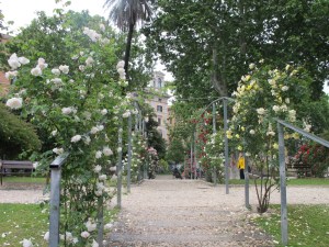 After enjoying the museum, I went to the piazza in front of the building. The piazza is, appropriately, a park. I sat in the sun, enjoying the trees, flowers, and hearing children playing in a modern garden — exactly where an ancient garden used to be. Like the museum, the park was a bit of a surprise. More on that in my next post.
