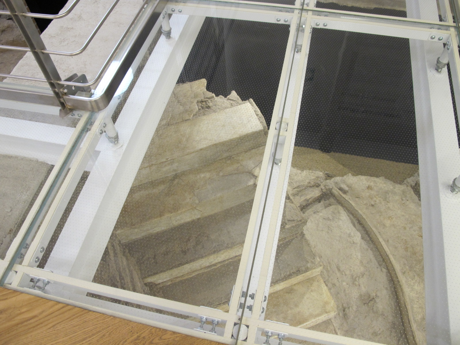 The museum displays various in-situ walls, water features, pavement, and, of course, those stairs, now under a glass panel.