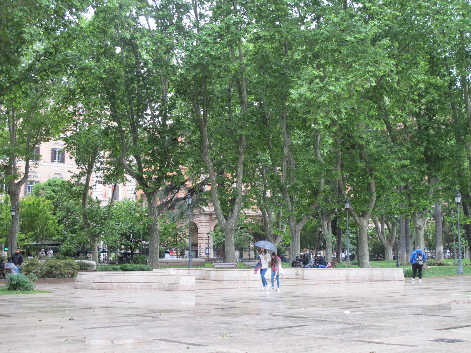 The park was quite run down and a bit seedy on my previous visit. Back in P.C., many of Rome’s parks were getting quite run down. I don’t know how recently or why the piazza was spruced up since something like this would have taken lots of time for planning and execution. But now, I am impressed and delighted with this pleasant little park.
