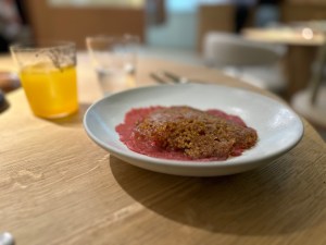 But what really counts is that the food and drinks are superb. In addition to the food we already discussed, the breads are lovely, their flavor and texture are perfectly balanced. One course of bread was focaccia made with three types of corn — each one clearly, but not overwhelmingly, evident.