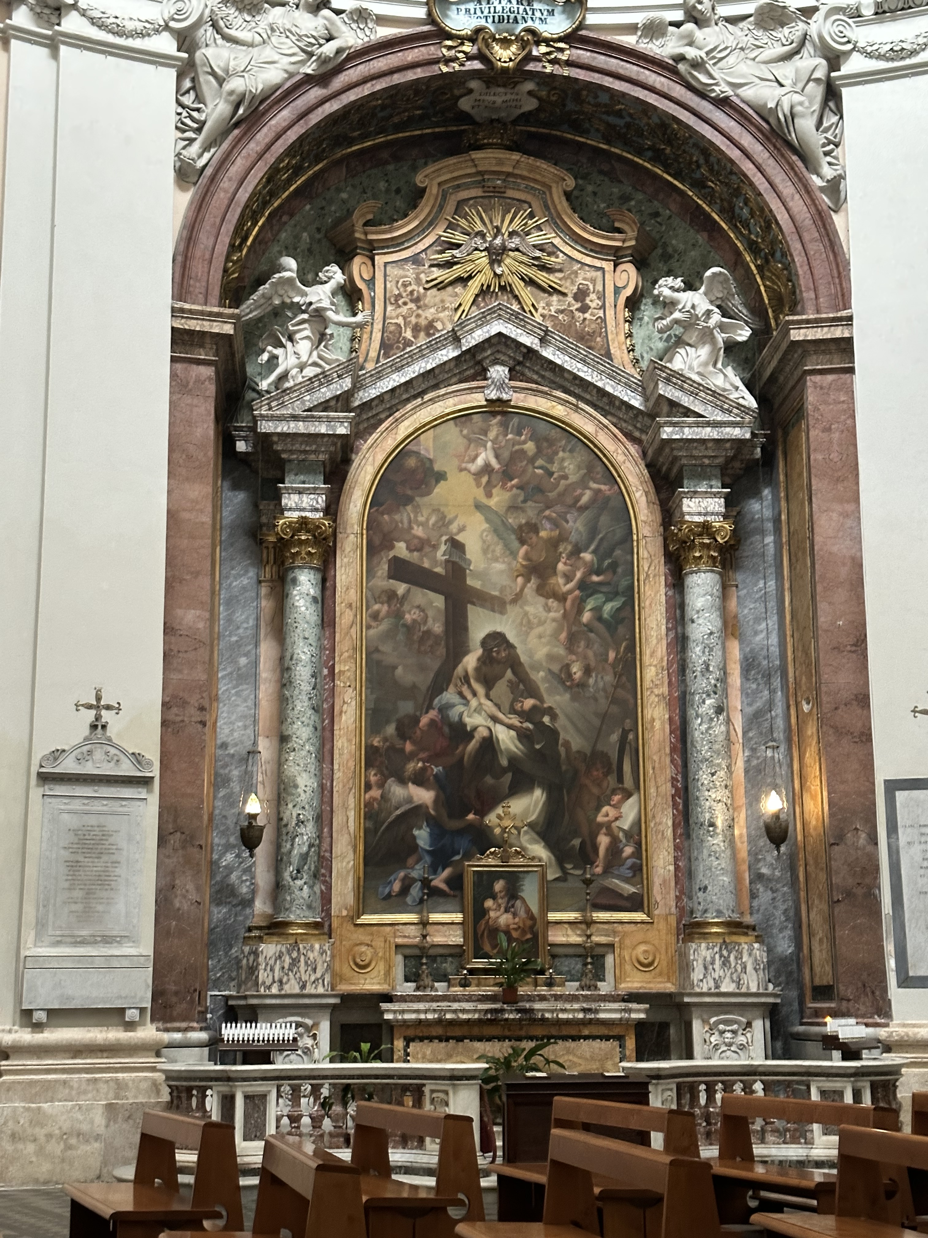 As usual, I had the church all to myself. I sat for some time and just gazed up at that lovely dome, and savored the peace and quiet. Thank you, Fortuna!