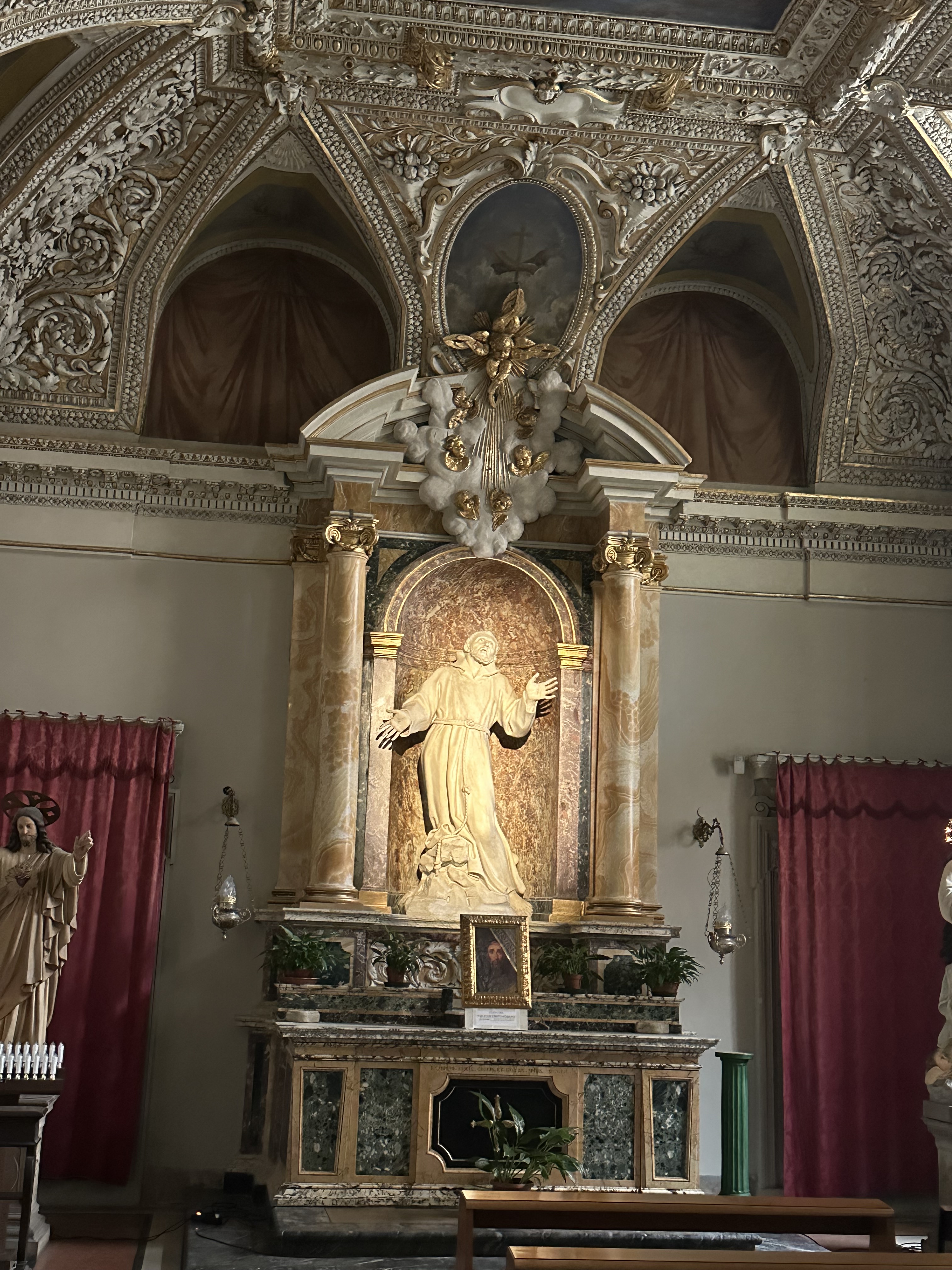 There’s also a little side chapel, dedicated to Saint Francis of Assisi, with a lovely ceiling and altar.