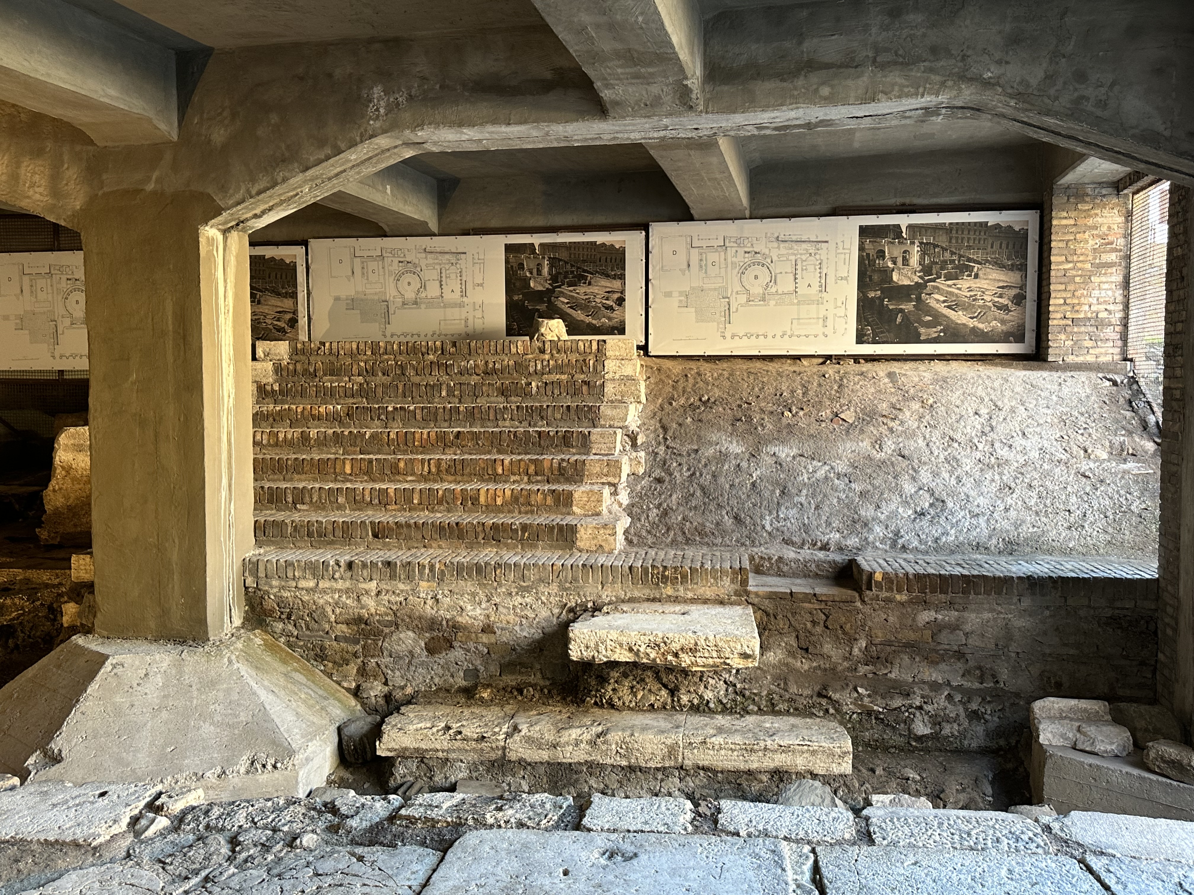 Much of “Temple D” lies under today’s sidewalk and partially under Via Florida. But now that the archaeological site is open for exploration, you can walk under the sidewalk to see it.
