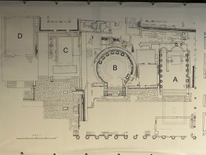 It’s particularly fascinating with respect to “Temple C,” the oldest of the four temples, to see how the temple areas were sometimes renovated. In this photo, you can see the recreated pavement, which went over a prior level where there had been another pavement and stairs leading to the temple. Apparently this may have been a result of an outbreak of fire.