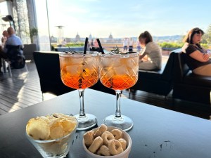 If you have a thirst for a drink — or a marvelous view — after visiting Constantine, you can find a hidden gem on your way back down the same path: There is a rooftop bar with reasonable prices! It will be on your right. Just go up a series of steps inside the Palazzo Caffarelli.