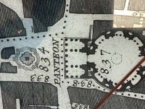 The other famous map is Giovanni Battista Nolli’s 1748 Pianta Grande of Rome. This fabulous map (which you can see online) is so detailed — and accurate — that it was used for centuries. Apparently, it was used by Rome’s city planners until quite recently. I particularly love this map because it shows the block where our palazzo is located, including the little alley on the side.