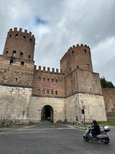 It was extremely fun walking through the walls and some of the towers, which are amazingly well preserved. You can imagine the soldiers manning these walls over the centuries. Indeed, the Aurelian Walls provided protection to Rome until they were breached by, fittingly, the Italians who re-captured Rome from the Pope in 1870, ushering in the unification of Italy. But, that is a story for another day. For us, it was time to hop a taxi and go for a wonderful lunch further out on the ancient Appian Way.