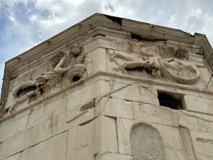 You can tell it’s the Tower of the Winds because the frieze at the top has beautiful reliefs depicting each wind by their respective directions.