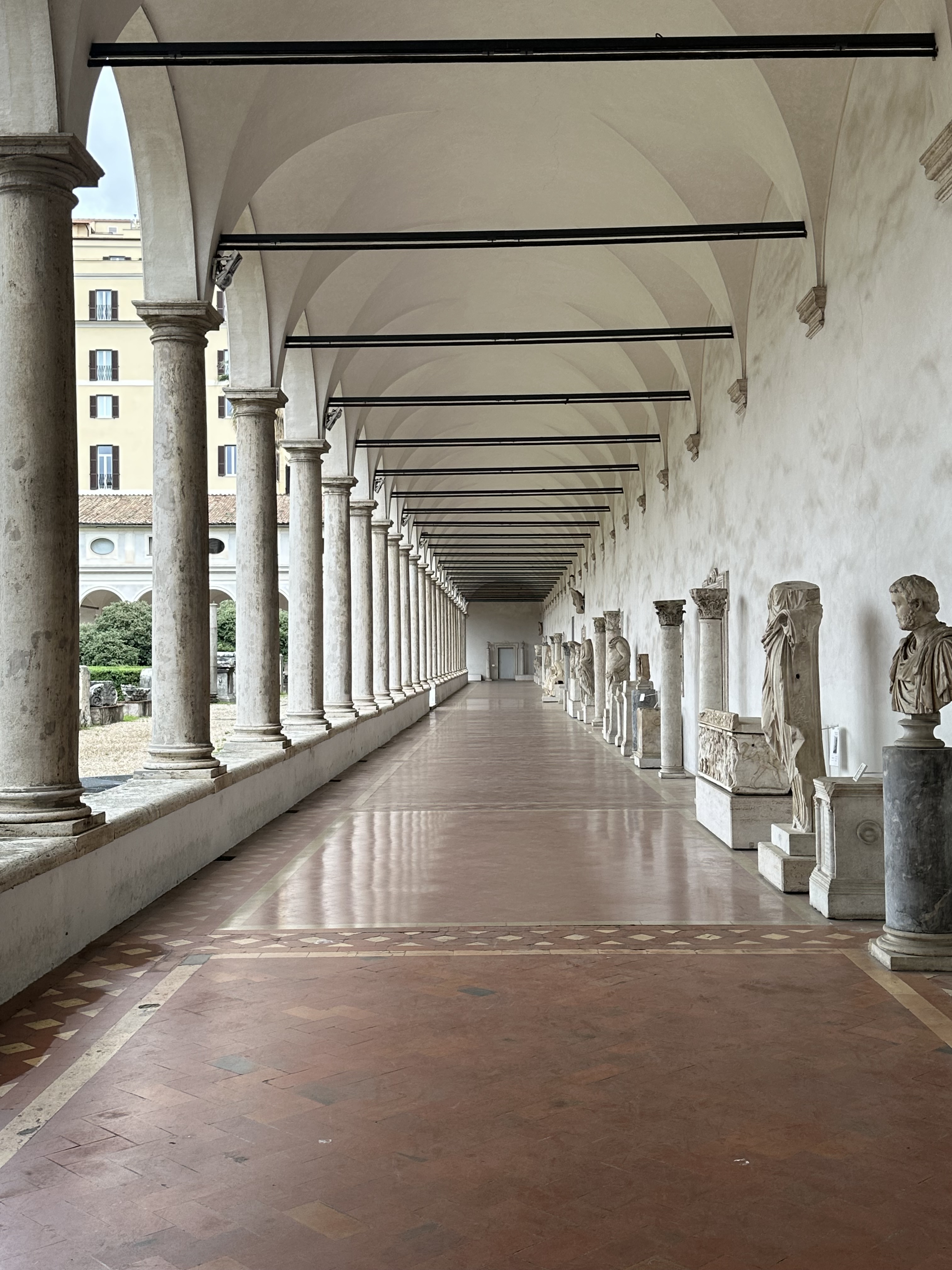 Ons of the four museums that make up the Museo Nazionale Romano, the Baths of Diocletian were built between 298 and 306 C.E. They were gigantic. I previously wrote about a lovely round church built from part of the bath complex. There’s a second church, designed by Michelangelo, that was built out of the remains of the baths. The majority of the bath complex, however, is preserved as a museum. The museum space is so large that it encompasses several “museums within a museum:” the Baths themselves, the Charterhouse of Santa Maria degli Angeli, the Museum of Written Communication in the Roman World, and the Museum of the Protohistory of the Latin Peoples.