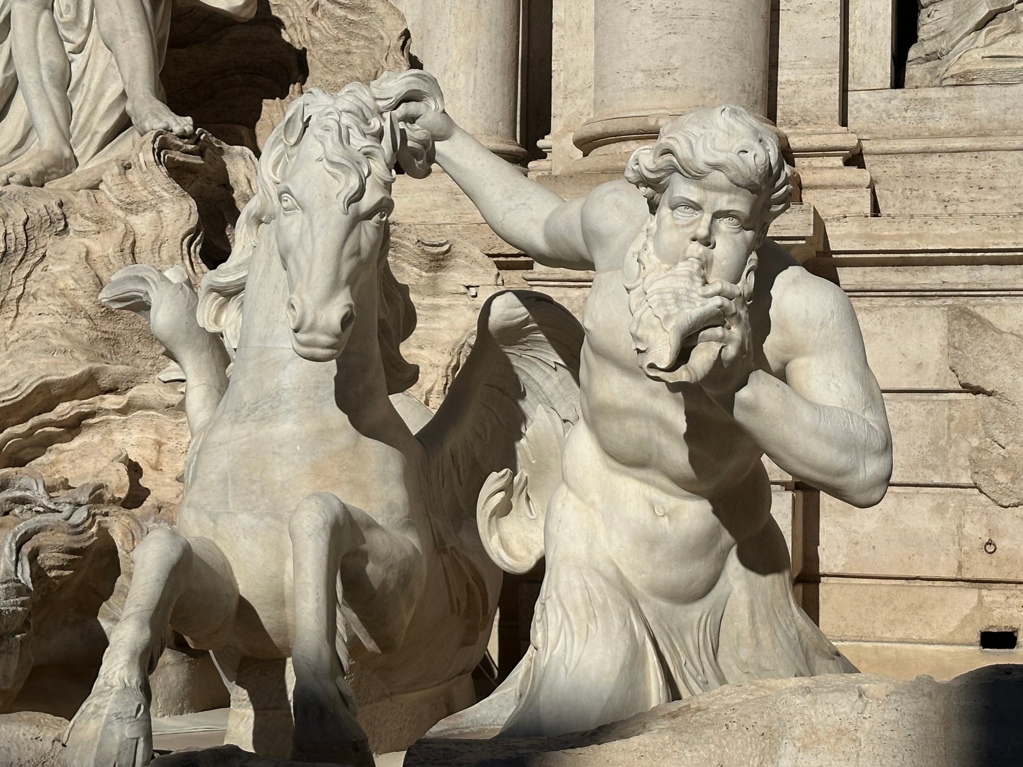 In an effort to still have the fountain accessible during its renovation, the Roman authorities have installed a walkway that allows you to walk over the area being cleaned and right up to the statues. It’s free, and no tickets are required. The signs around the fountain proclaim that this is, “a unique opportunity to admire the Trevi Fountain up close.” Yes, it is.