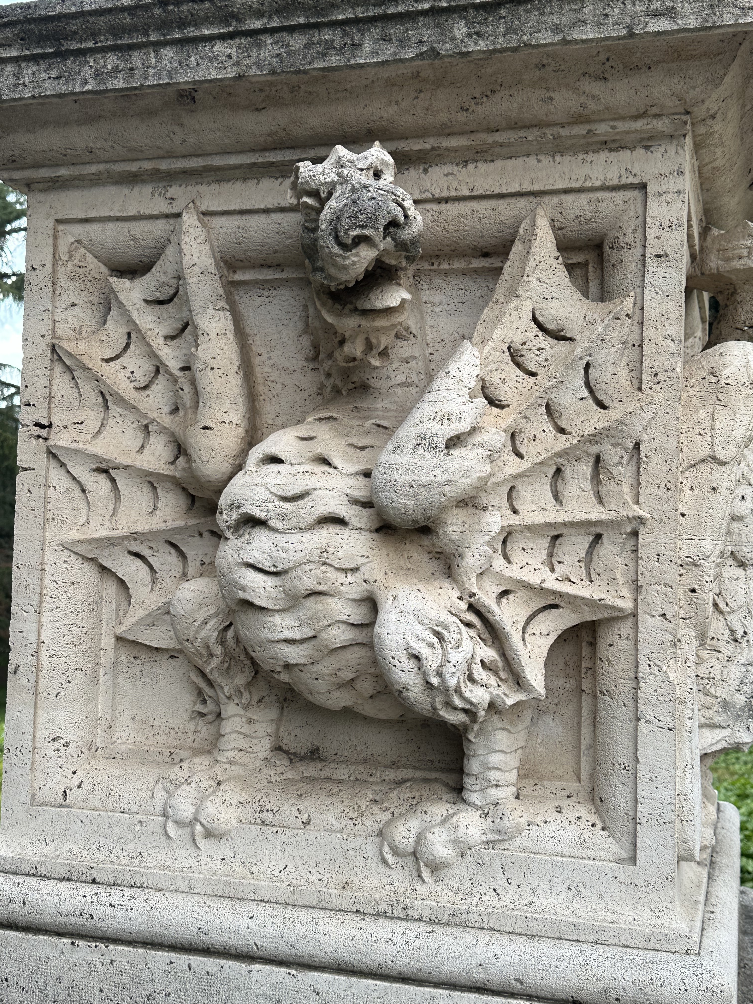 I smiled as I walked by the Borghese family symbol, a dragon. This one’s small size and goofy grin made it rather cute.