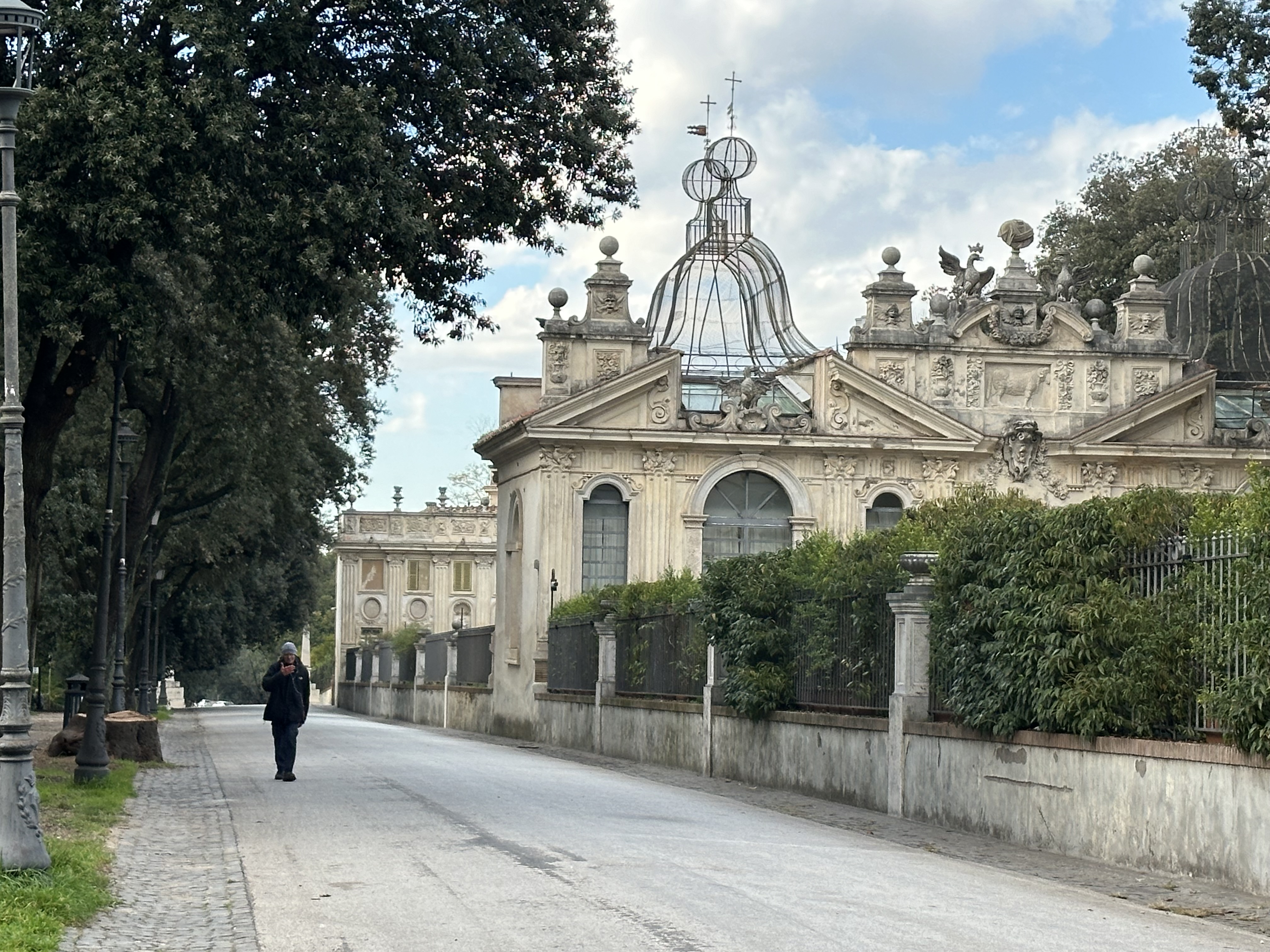 For a while I sat on a bench, enjoying this verdant setting. A flock of wild parrots were chattering noisily. Some very well behaved dogs were running about joyously. And I sat and soaked in the sun for a while. It was another glorious day in the Eternal City.