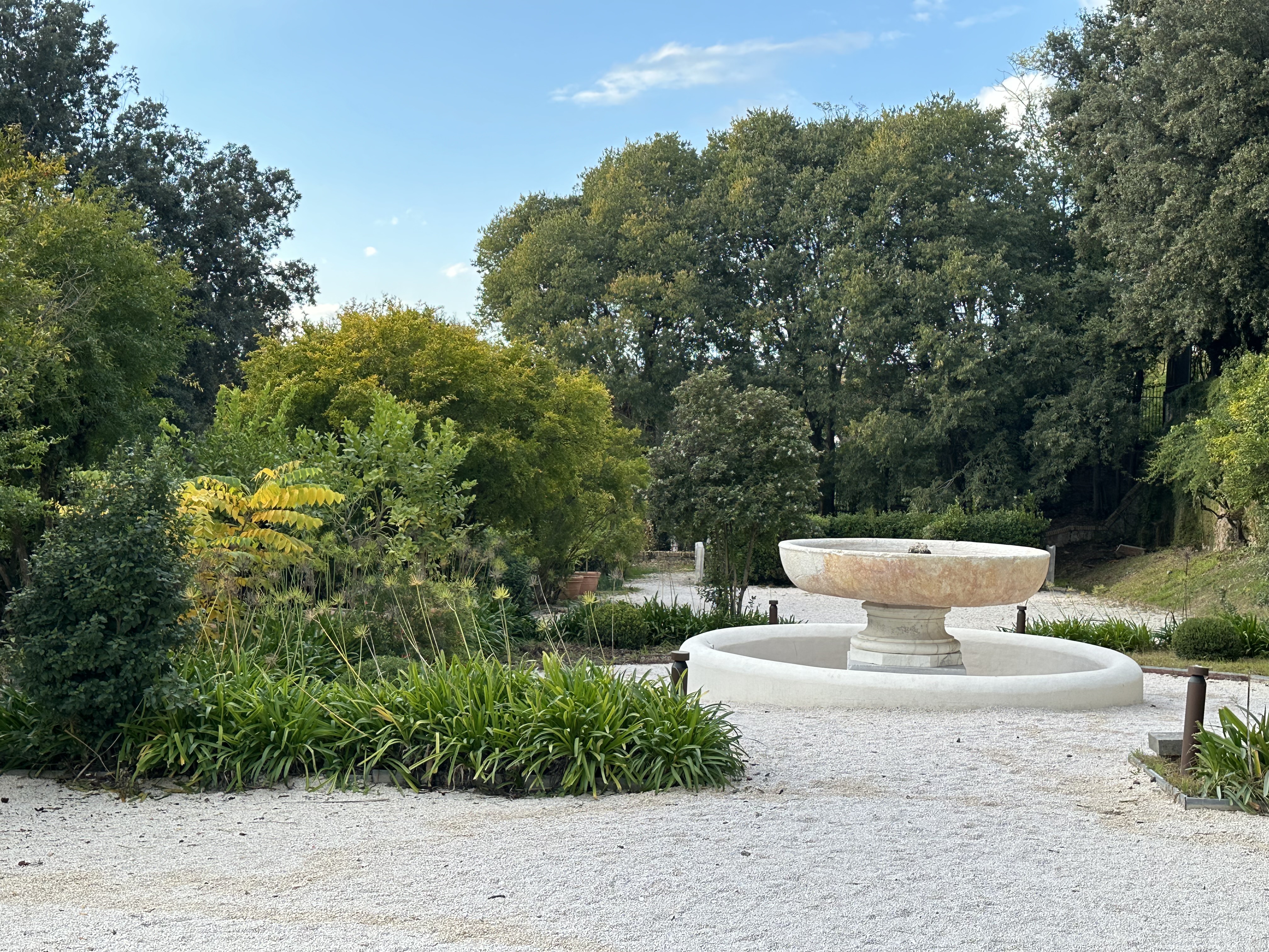 At the center of the garden is an ancient Roman basin, converted to a fountain.