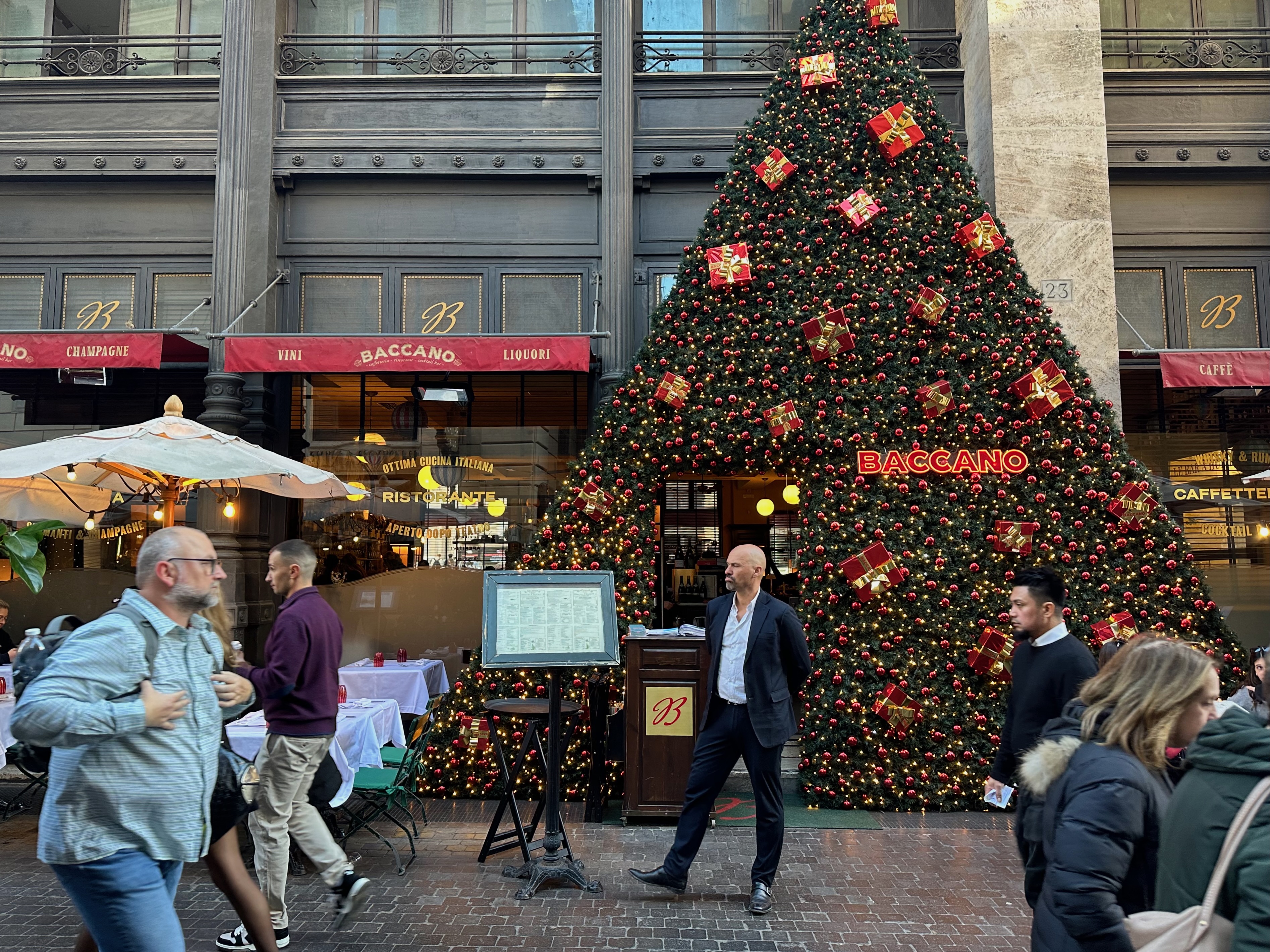 When Katie says something is a “flawless rendition,” you stop what you are doing and you go get it and eat it. So we were off to Baccano, which was already decorated for Christmas.
