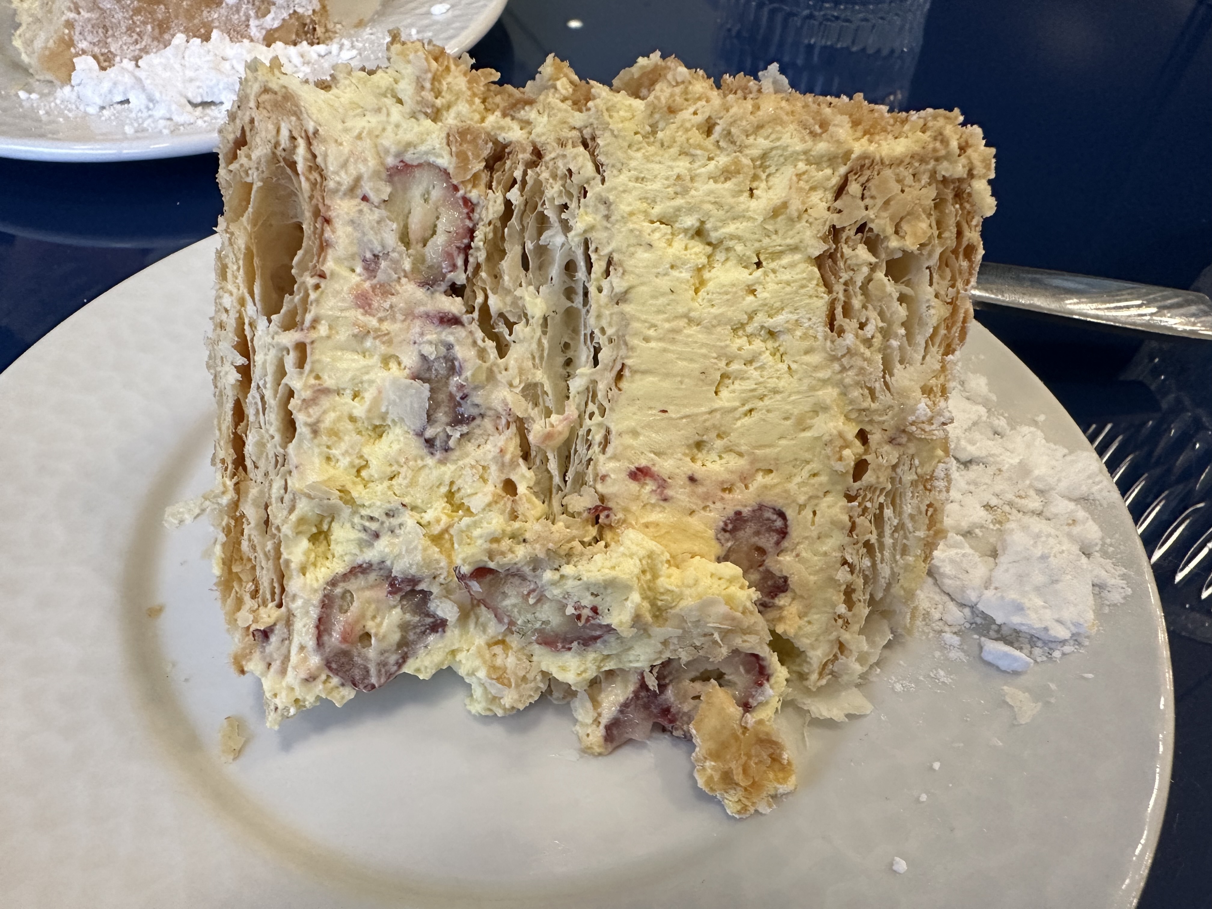 Millefoglie literally means “1,000 sheets” and it’s a slew of paper-thin layers of delicious, light pastry filled with alternating layers of pastry cream, often accompanied by fruit. We shared a slice with raspberries, proud of ourselves for having “earned” it with all our walking up and back down from St. Peter and Paul’s.