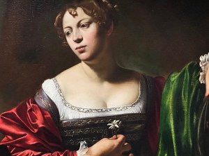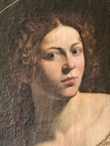 A prime benefit of this reunion of so many Caravaggio paintings was that you could see familiar faces popping up in several works. Just one example — Fillide Melandroni was a courtesan and a favorite model of the artist’s. Besides the works below, she’s also in his Judith and Holofernes.