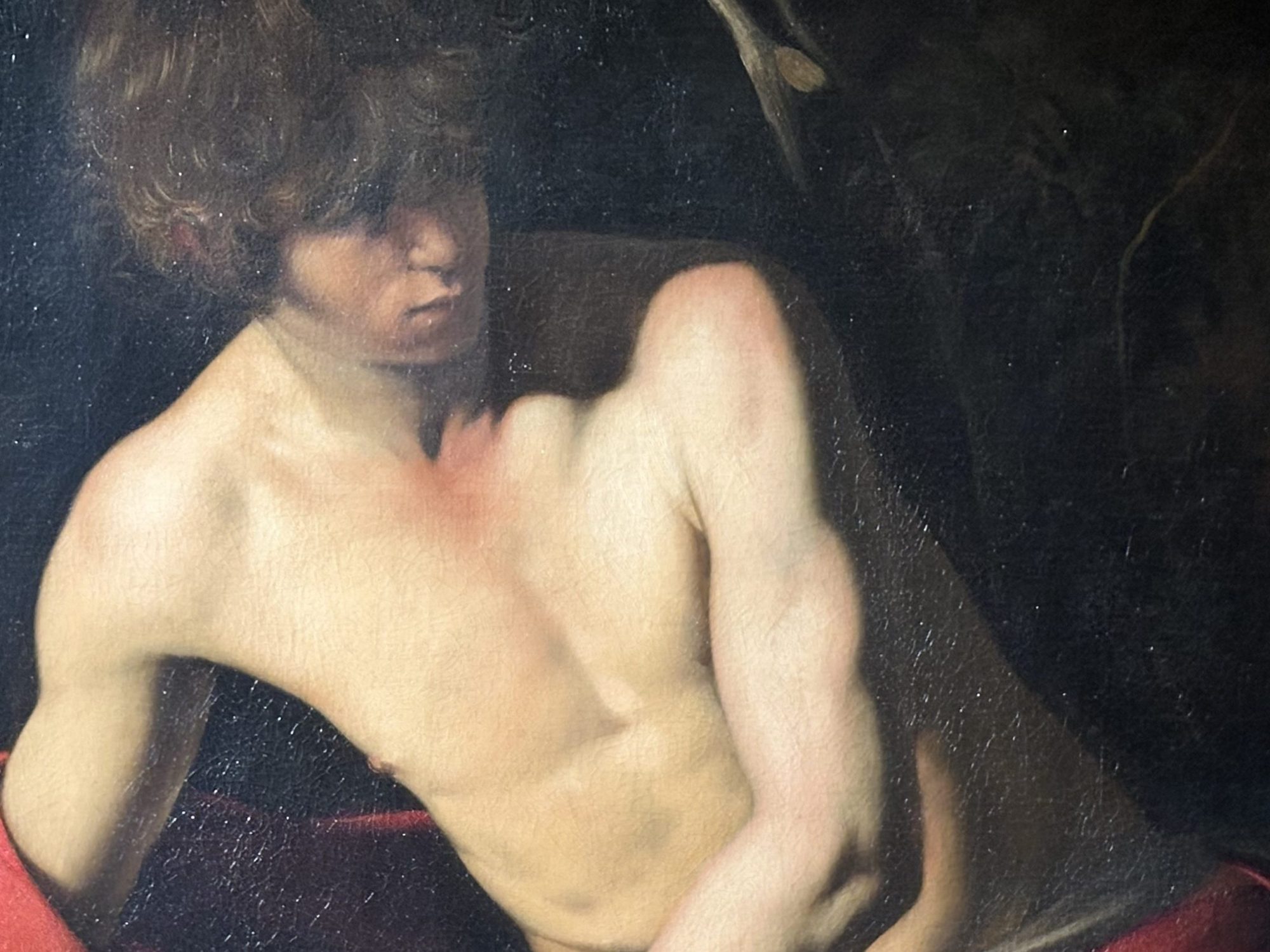 Patrons admiring the marvel of Caravaggio’s Saint John the Baptist in the Wilderness.