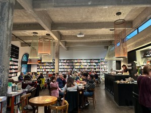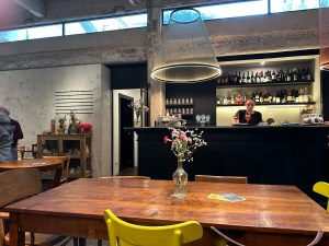 Today, the Shell does not sell gas. Instead, it’s a neighborhood bookstore and bistro (Shell Libreria Bistrot). The interior space is as cozy you can make a former gas station. The walls are packed with books, including some English-language selections. One corner is a dedicated children’s section complete with a kid sized table. The center floor is for the bistro tables — a handful of two-tops, slightly more four-tops, and a couple 6-seaters — plus a few short book displays. People of all ages were hanging out, talking, reading, and relaxing. This neighborhood spot is clearly much loved and absolutely charming.