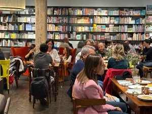 It was early evening, so we ordered some drinks, which were good and very reasonably priced. Then of course, Laura had to satisfy her bibliophilia and buy a book or two. You will find them at the apartment.