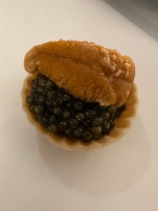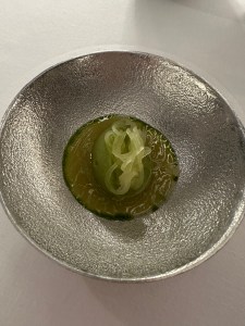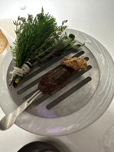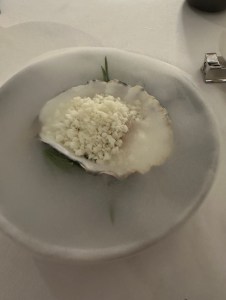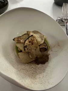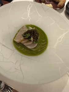 We were seated right in front of the kitchen, so we had a clear view of the team prepare our lovely dinner, orchestrated by the young Tuscan executive chef, Iacopo Iualè. A lengthy parade of magnificent amuse bouches soon graced our table.