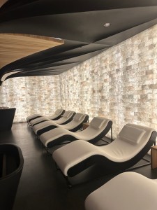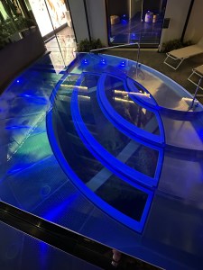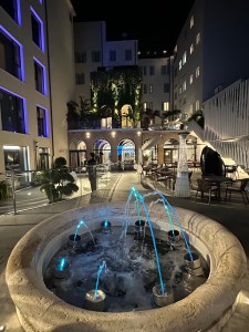 We had read that ancient Roman ruins and artifacts had been discovered during the construction of the Romeo hotel. We asked the charming concierge if we could take a peek at them, and he graciously gave us an impromptu tour of the hotel. The way the ancient history is respectfully shown off alongside the hotel’s art is knock-out. The design concept of lines constituting the surface is on display in the rest of the hotel too.