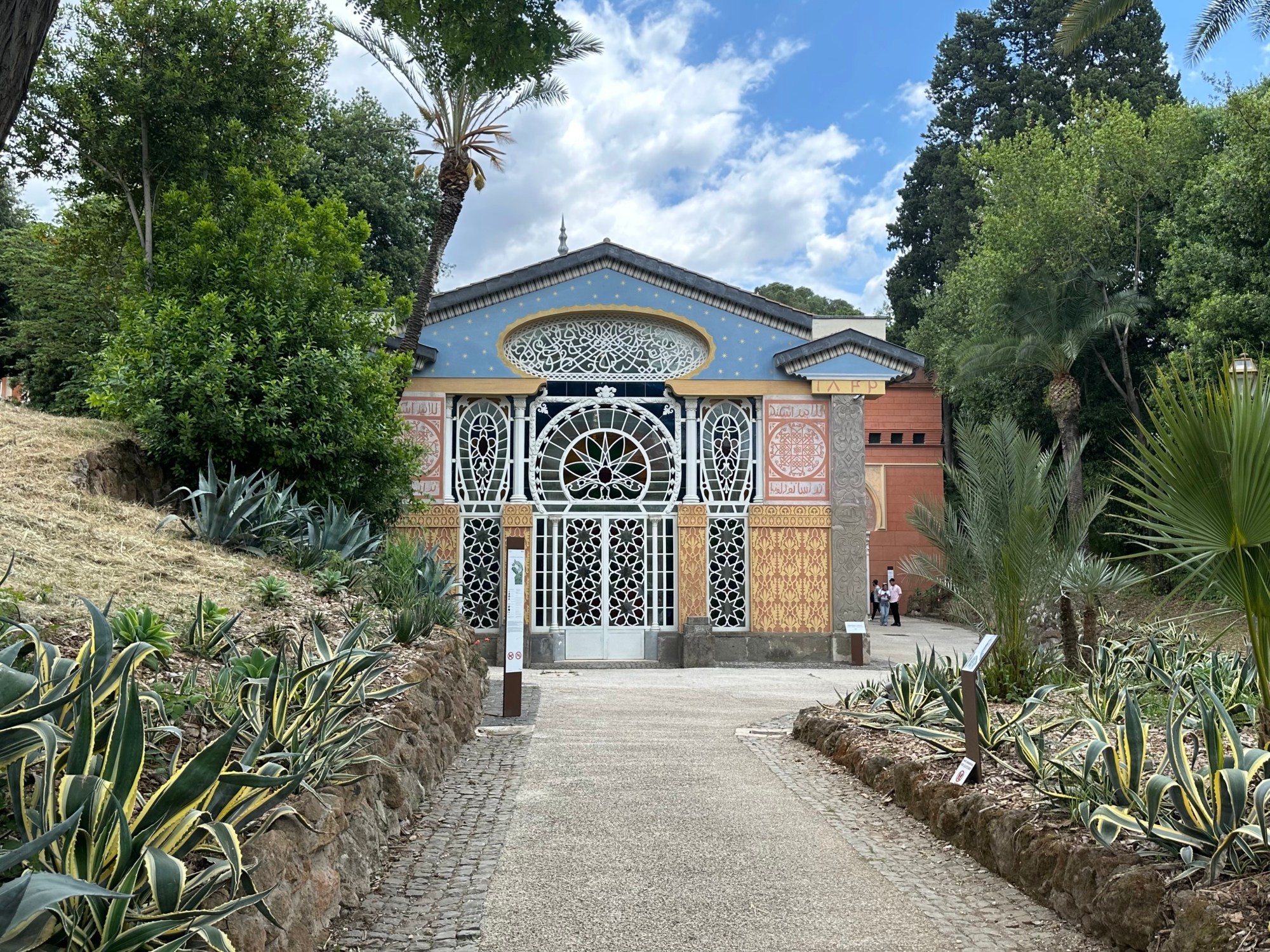 The final part of our visit to Villa Torlonia was to a beautiful little gem. The Serra and Torre Moresca (Moorish greenhouse and tower), is a 19th century fantasy masterpiece in iron work by architect Giuseppe Jappelli (who also designed the House of the Owls), inspired by the Alhambra in Grenada, Spain.
