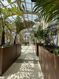 Today, it’s regained all its colorful beauty. As you can see from the photo at the top of this post, you reach the greenhouse down a little path that is bordered by plants.