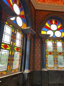 Of course, the most beautiful part of the building is the color of the stained glass when the sun shines through it.
