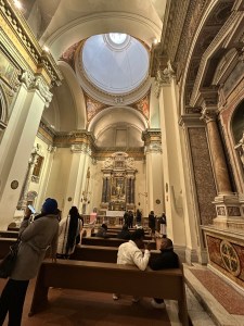 We found ourselves inside a church we had not heard of before, Sant’Ambroglio della Massima. We only figured out the name from the construction permit posted on the scaffolding. Today the church has a Nigerian congregation. Service had ended, but their choir was practicing, so we sat for a bit and enjoyed the music. Only later that evening when we were sitting having an aperitivo did we run a Google search and learn that we had inadvertently visited a church with a very scandalous history! These little surprises are all around you in Rome — and you’ll never know what you find when you boldly explore the Eternal City.